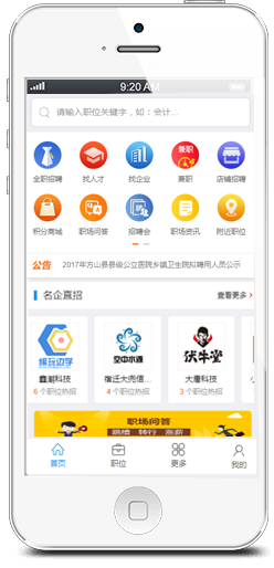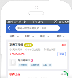 海量工作機(jī)會(huì)等著您,同一時(shí)刻您將面對(duì)數(shù)以十萬(wàn)的工作機(jī)會(huì);幫助您記憶最近搜索條件,簡(jiǎn)化您的搜索操作。